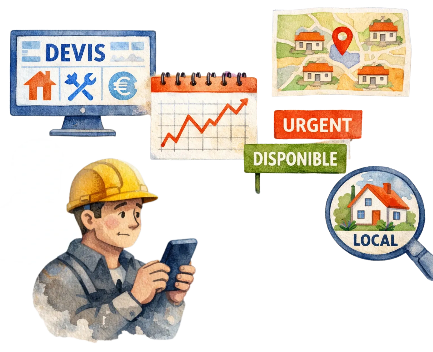 Vous dépendez fortement des plateformes de devis, votre planning en dents de scie vous laisse peu de temps pour communiquer, vous avez du mal à vous différencier localement en ligne et, avec une vision très court terme, vous cherchez surtout des chantiers ou rendez‑vous immédiats plutôt qu’une stratégie longue.